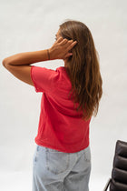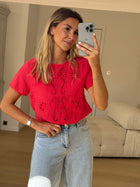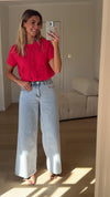 The Red Rita Blouse stands out with its delicate front embroidery and decorative trim along the collar and hem. Designed with short sleeves and a lightweight unlined finish, it’s a chic piece that adds a refined touch to your everyday looks.