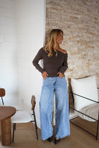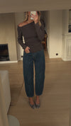 Unconventional elegance meets cozy sophistication in the Brown Ambre Sweater. With a daring bare shoulder, long sleeves, and subtle side and shoulder cinching, this slightly fitted knit sculpts your silhouette while keeping comfort at the forefront. Perfect for a polished day look or a chic evening outfit, it’s a sweater that truly turns heads.