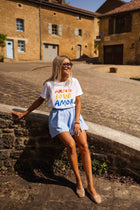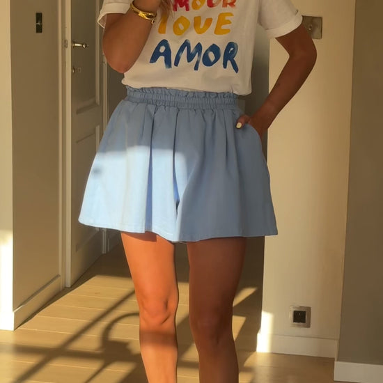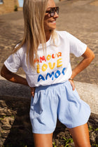 - The Ecru Amor T-Shirt brings easy charm to your everyday wardrobe with its soft crewneck design and short sleeves. Featuring a colorful “Amor love amor” logo on the front, it adds a vibrant pop to a laid-back essential.