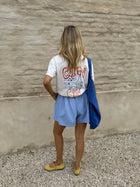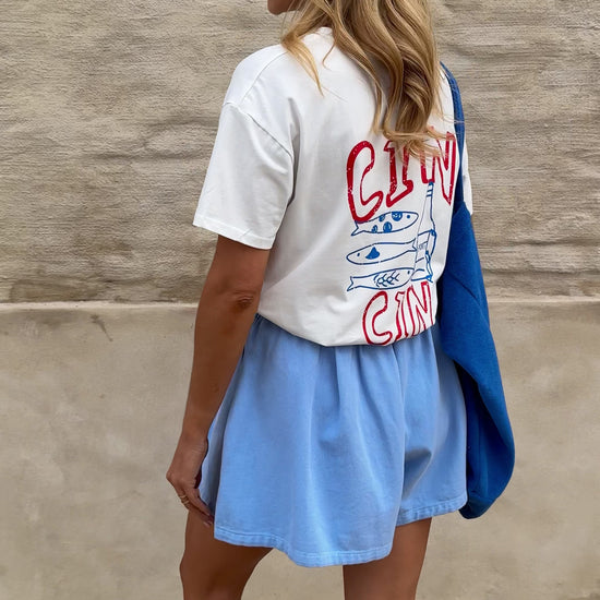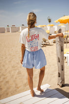 - Our models are also wearing the Blue Erica Shorts