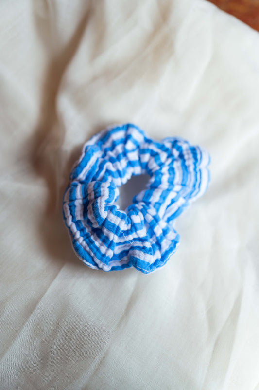 Notify meBlue and Ecru Striped Devo Scrunchy