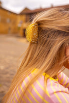 - Brighten up your look with the Yellow Lemon Hair Clip—designed in a fun lemon shape for a playful, tropical twist. Bold, cheerful, and easy to wear, it’s the perfect accessory to add a splash of sunshine to your hairstyle.