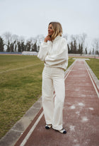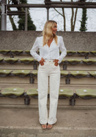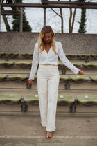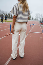 - Step into effortless style with the Beige Dadi Jeans. Crafted from elastic fabric for a comfortable, high-rise fit, these jeans are designed to move with you. Featuring a sleek line on the front and practical pockets, they offer a perfect blend of function and fashion. The ideal choice for those who want to look chic without sacrificing comfort.