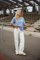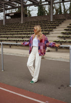 - Our model is also wearing the White Hary Shirt, the Striped Jouri T-Shirt, the Patterned Kislon Jacket, the Light Blue Marguerite T-Shirt, and the Ecru Justu Sweater