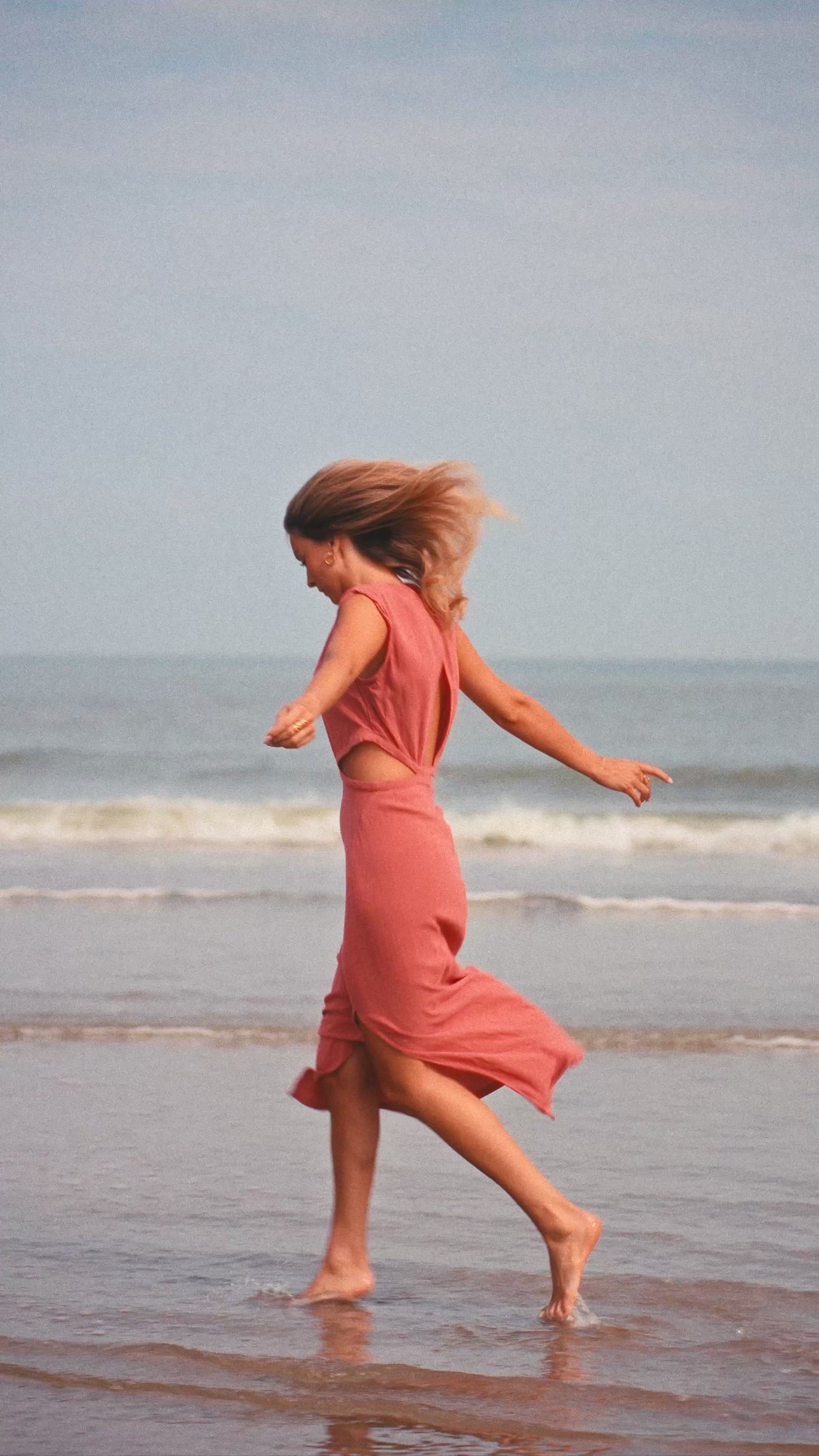 - This vibrant dress features a slightly high collar and a convenient zipper at the back for a sleek and stylish look. The openings at the hips, back, and side add a touch of femininity, making this brick colored dress a must-have for any summer wardrobe. Though unlined, the dress is not sheer.