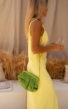 - Our model wears the Green Jerry Bag