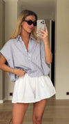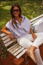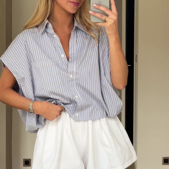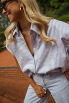 Cool and effortlessly put-together, the Blue Striped Oriane Shirt is your new go-to for warmer days. With its sleeveless cut, classic shirt collar, and button-down design, it offers a relaxed, oversized fit. Tuck it in to your go-to denim or wear it loose for an easy, relaxed silhouette.