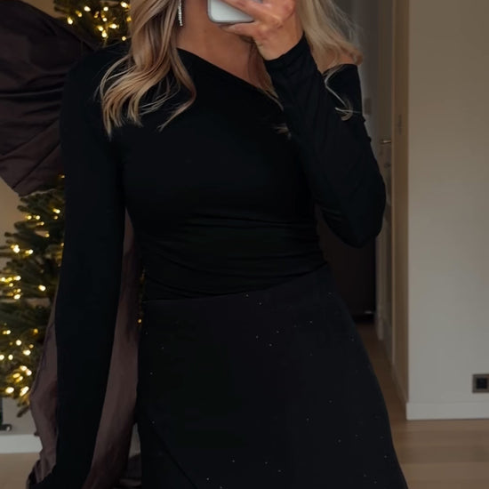 Step into sleek style with the Black Astra Skort. Designed as a chic skort adorned with scatered rhinestones, it combines the ease of shorts with the polished look of a skirt. Perfect for pairing with blouses, sweaters, or statement tops, it’s a versatile piece for both casual outings and evening looks.