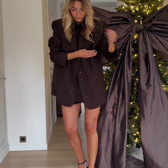 Upgrade your wardrobe with the Brown Rori Skort, adorned with tiny, tonal rhinestones, it's a versatile piece that blends the ease of shorts with the feminine look of a skirt. Its tailored silhouette adds structure, making it perfect for pairing with blouses, sweaters, or casual tops. Ideal for both chic daytime looks and stylish evening outfits.