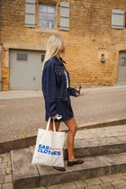 - Simple, sturdy, and full of personality — the Blue and Red Easy Clothes Tote Bag is your go-to carryall. Featuring a bold “EASY CLOTHES” logo in blue and red on a rectangular natural canvas, it’s perfect for everyday errands, weekend strolls, or tossing in your essentials on the go.