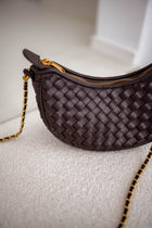 - Introducing the stunning Dark Burgundy Dove Bag with its sleek golden strap and croissant shape. The golden zipper adds a touch of elegance while the convenient lining and inside pocket make it functional and stylish.