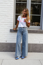 Elevate your denim collection with the Medium Blue Dadou Jeans. Designed with a high waist and belt loops for a secure, flattering fit, these jeans feature a subtle flare at the bottom that adds movement and style. Functional front and back pockets complete the look, making them both practical and effortlessly chic—perfect for casual or dressed-up ensembles.