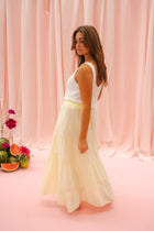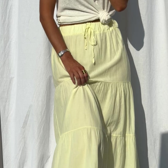 Made in Italy, the Yellow Madel Skirt is a fluid long skirt with a comfortable elastic waist and soft lining. Slightly sheer with graceful movement—perfect for sunlit days.