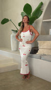 Sweet and playful, the Ecru Clary Dress charms with delicate embroidered cherry motifs on a crochet design. Featuring thin straps, a round neckline, and a slightly shaping fit, it creates a feminine silhouette with a breezy finish. Slightly transparent and unlined, it’s the perfect piece for sun-soaked days with a touch of whimsy.