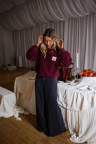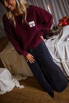 Cozy meets casual with the Burgundy Gaella Sweater. Crafted in soft “fleece” effect material, it features a classic crew neck, long sleeves, and a relaxed, slightly loose fit. A subtle label on the chest adds a modern touch to this everyday essential.