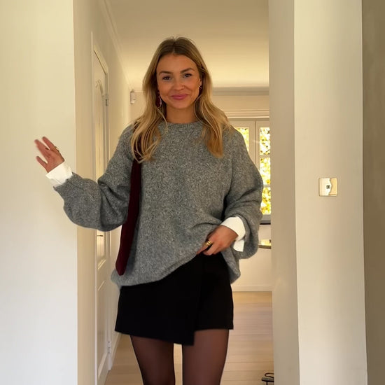 The Grey Jutta Sweater is a cozy and stylish addition to your wardrobe. Made in Italy, it features a classic crew neck, long sleeves, and slightly flared cuffs for a subtle, feminine touch. Perfect for layering or wearing on its own, this sweater combines comfort and effortless elegance.