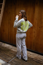 Add a fun twist to your wardrobe with the Beige Milene Cardigan. Featuring a round neck and long sleeves, this slightly loose piece ensures comfort and style. The neon yellow “Self Love Club” logo on the back brings a playful and positive touch to this cozy essential.