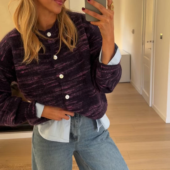 Bring depth and style to your layers with the Purple Armen Cardigan. Featuring a crew neck, long sleeves, and a button-up silhouette, this cardigan showcases a dark purple gradient for a bold, modern look. Perfect for pairing with casual or dressed-up outfits, it adds a touch of sophistication to any ensemble.