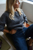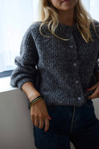 Wrap yourself in the cozy charm of the Grey Elony Cardigan. Crafted from a soft, warm knit, it’s the perfect blend of comfort and style. The round neckline button-up silhouette give it a timeless touch, making it easy to wear open or closed for a look that’s effortlessly refined.
