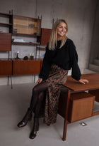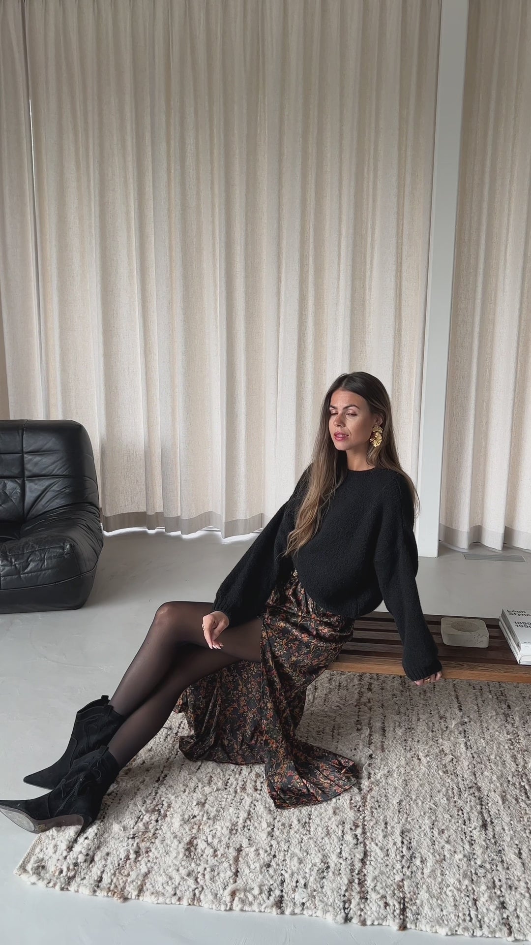 This skirt looks amazing and can be worn in multiple ways. I wore an oversized sweater and a thinner camisole with a cardigan, and it complemented both looks incredibly. Rich fall colors that can also be worn through winter with tights for more warmth. LOVE it!