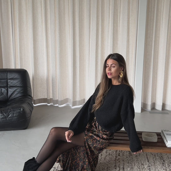 Romantic, breathable, and perfect for fall or transitional weather. The Bridget Skirt is crafted from a lightweight, soft woven fabric with a dark floral print and an elastic gathered waist.