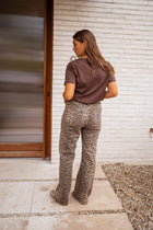 - Stand out with the Max Leopard Jeans, featuring a bold leopard pattern and a flattering high-rise fit. Designed with convenient front and back pockets, belt loops, and a stylish flare cut, these jeans combine comfort with a trendy look. Perfect for adding a touch of edge to your everyday outfits.