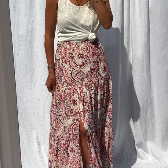 The Patterned Sharon Skirt is a flowy, long skirt designed with an elastic waist for all-day comfort. Slightly loose and unlined yet non-transparent, it's the perfect blend of ease and style.