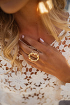 - Playful yet polished, the Golden Evely Ring adds a unique twist to your collection. Its organic circular shape and high-shine golden finish catch the light from every angle. Crafted from stainless steel and fully adjustable, it’s easy to wear and impossible to ignore.