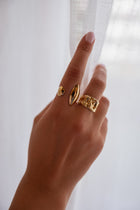 - The Golden Suelly Ring boasts an adjustable design, constructed with durable stainless steel and finished in a stunning golden hue.