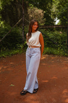 - Our models are also wearing the Beige Alyssa Skirt and the Light Blue Dadou Jeans