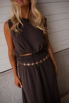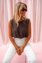 The Chocolate Salma Top is a sleeveless cotton gauze piece with a round neckline and adjustable tie at the hem. Slightly short and unlined yet non-transparent, it's made in Italy for effortless, everyday style.