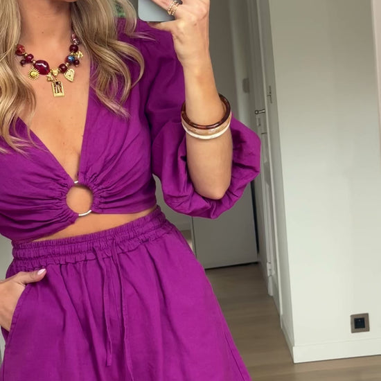 - Our models are also wearing the Purple Kelya Linen Blouse