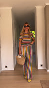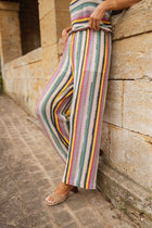 Turn heads in our high-rise Striped Crochet Gauthier Pants featuring an eye-catching texture, comfortable elastic waistband, and convenient shorts lining for confident all-day wear. These statement pants effortlessly blend style with practical comfort you'll love.
