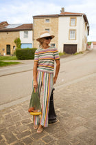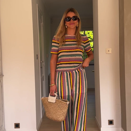 - Our model is also wearing the Striped Crochet Malia Blouse