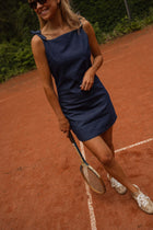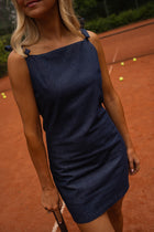 Casual meets charm in the Dark Blue Melodie Denim Dress. Crafted from structured denim with a square neckline and non-detachable shoulder ties, this short dress offers a straight cut that flatters without effort. It’s a modern take on a classic, perfect for everyday wear with a hint of character.