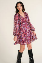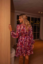 - Step into effortless elegance with the Patterned Memphis Dress. Designed to flatter, its long sleeves and wrap front create a stunning silhouette, while the elastic waist ensures a perfect, comfortable fit. The snap buttons at the neckline add a touch of detail, and the flowy, lined fabric moves with you for a chic, graceful look. Whether you're dressing up for an evening out or looking for a stylish day option, this dress guarantees you’ll turn heads and feel confident.