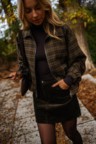 - Our model is also wearing the Black Jutta Sweater and the Brown Checkered Philipa Jacket