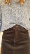 Effortlessly stylish, this khaki corduroy skirt features a convenient button and pull tab fastening, dual front pockets for practicality, and a short lining that keeps you comfortable all day long.
