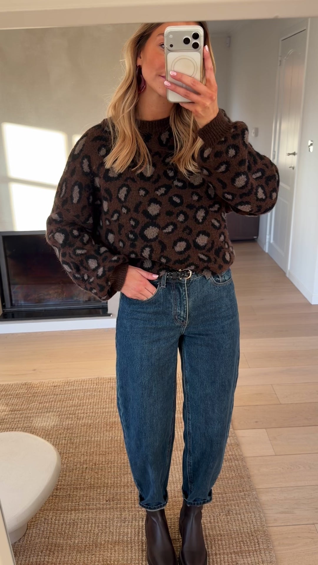 Bring a touch of character to your knitwear rotation with the Brown Leopard Laurel Sweater. Designed with a classic crew neckline and long sleeves, it features a subtly relaxed shape that feels easy yet polished. The soft fabric enhances comfort, while the leopard motif adds a confident, fashion-forward edge perfect for everyday wear.