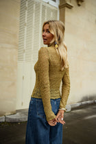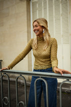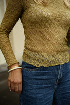 Sheer, textured, and quietly bold, the Khaki Francine Blouse is designed to make an impression without excess. Its all-over lace creates depth and dimension, while the slightly high collar brings a refined, vintage touch. Crafted from an elastic fabric for a comfortable, close-to-body fit, and finished with long sleeves, the Khaki Francine Blouse is perfect for layering or wearing as a statement on its own.