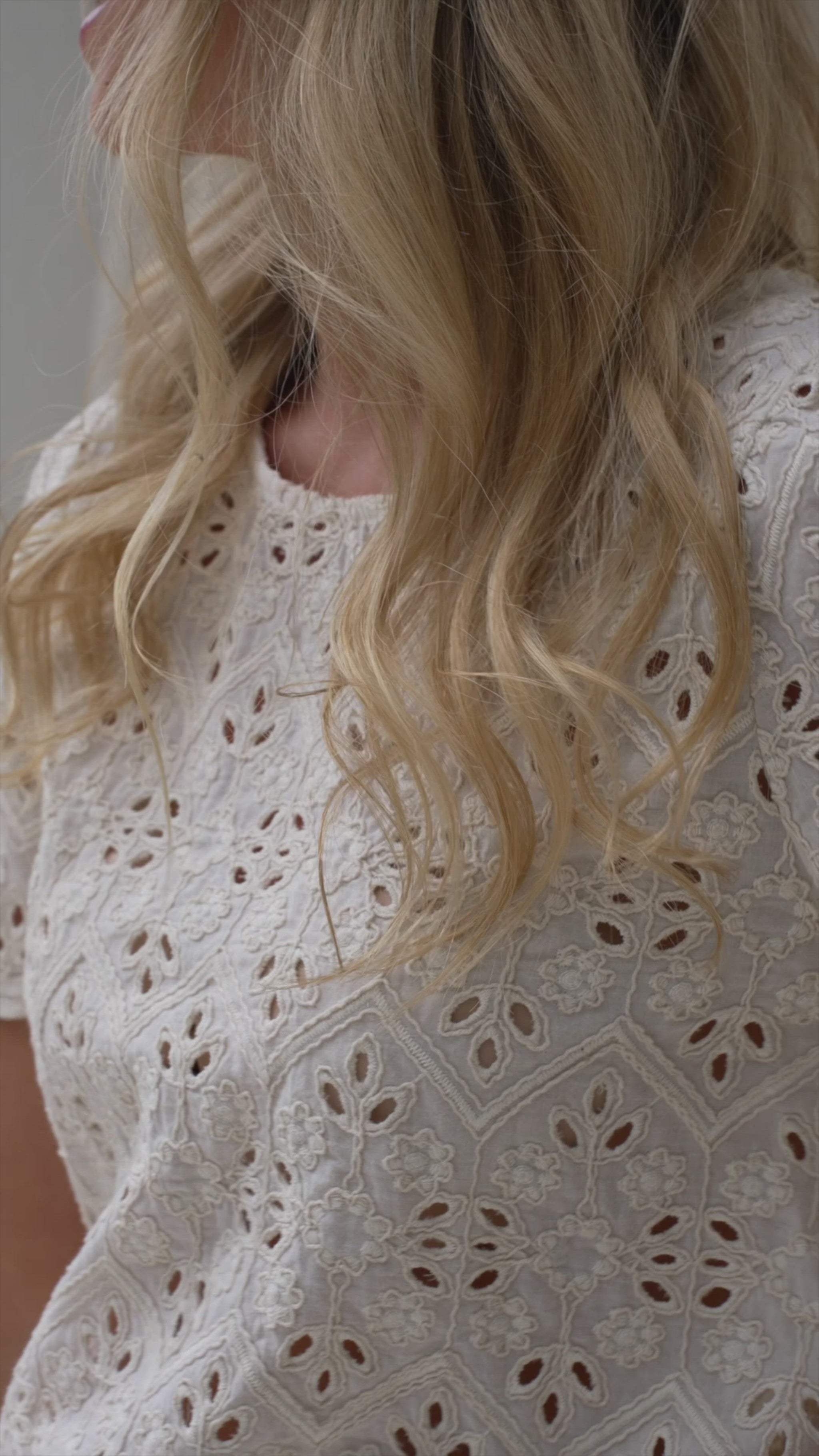 This is so pretty. It’s more off white in person than in the photos, but I prefer it this way. I’m 5”2’, 109lbs, 34A, and the s/m fit perfectly.
