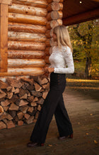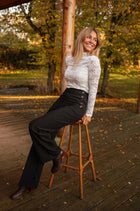 This top is very unique with the flower lace detail and I love how it fits just right, not too loose and not too tight. It looks very chic with a black or brown moto jacket, vegan leather blazer, or just by itself. I love it!