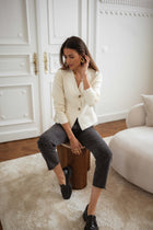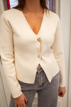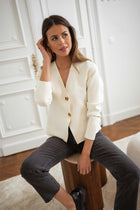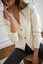 - The Ecru Vonna Blouse is the epitome of refined style. Its sleek, tight fit and long sleeves offer a flattering silhouette, while golden buttons add a touch of luxe. With detachable buttons for customizable flair, this blouse is your go-to for effortlessly elevating any outfit. Perfect for those who appreciate versatile elegance and timeless charm.