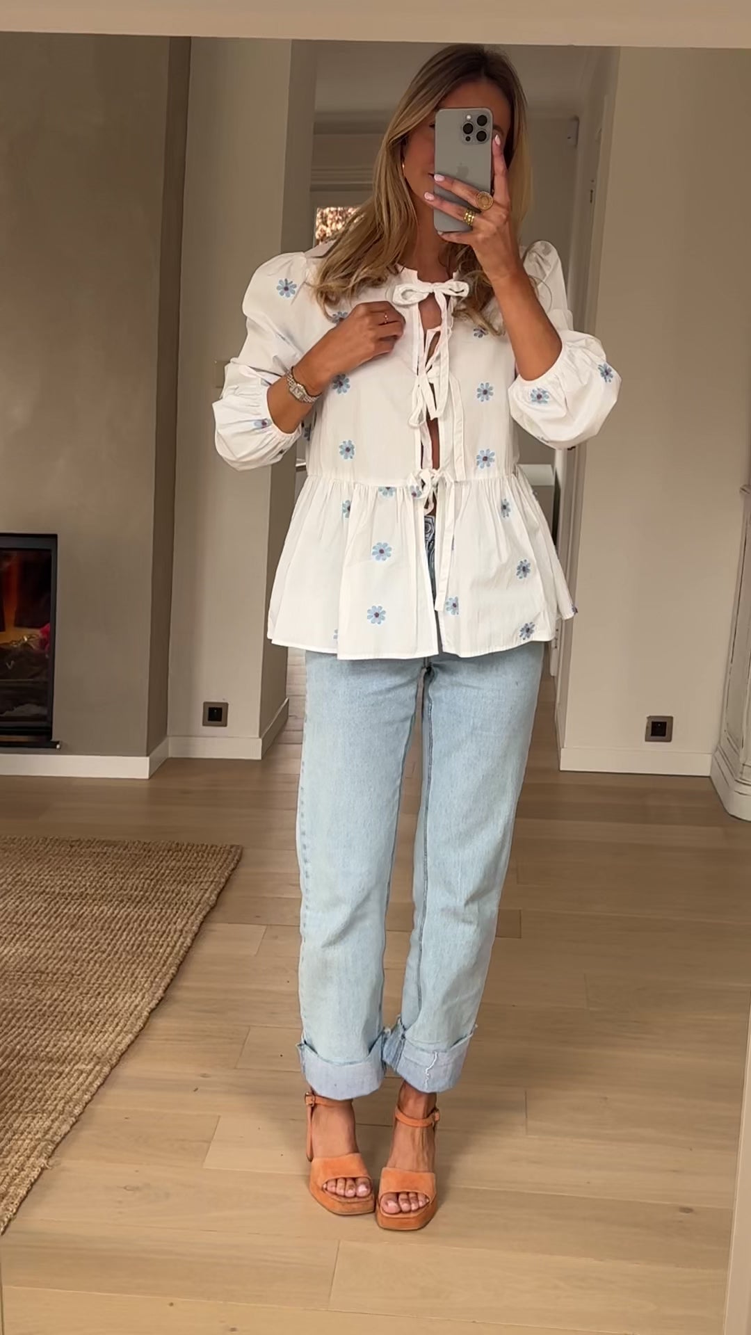 - Our model is also wearing the Blue Maddie Jeans