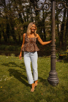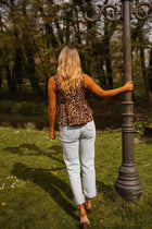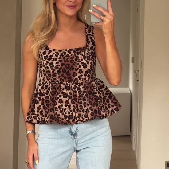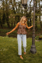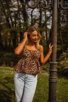 Bold and feminine, the Leopard Mylana Top adds a fierce twist to a classic silhouette. Featuring a square neckline and slender straps, it’s crafted from a medium weight fabric for a flattering silhouette. The ruffled hem brings a playful finish, making it a standout choice for day or night.