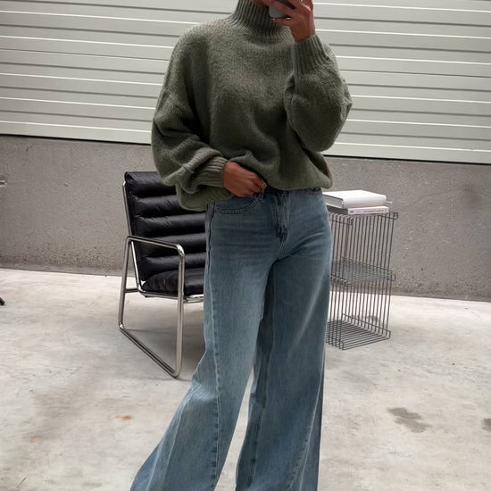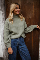 Wrap yourself in comfort with the Khaki Angele Sweater. Designed with a high neck, long sleeves, and a slightly loose fit, this warm knit combines effortless coziness with understated style—perfect for chilly days.