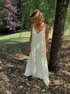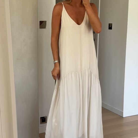 Elevate your look with the Light Beige Stiles Dress, a luxurious maxi dress made in Italy from exceptional silk fabrics. Designed with a flattering V-neck, fluid drape, and full lining for a non-transparent finish, it offers timeless elegance with effortless comfort.
