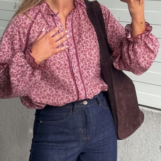 The Pink Patterned Natacha Shirt brings a refined yet relaxed feel with its slightly loose fit and flattering V-neckline. Made with long sleeves and a button-up silhouette, it offers versatility and ease of styling. Unlined and fully opaque, this shirt is a reliable choice for both workdays and weekends.