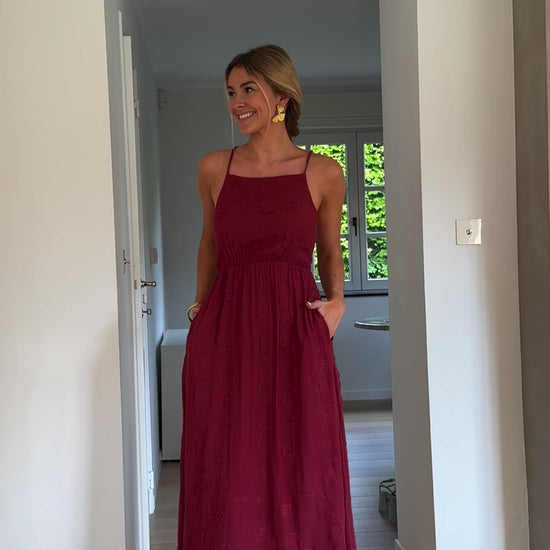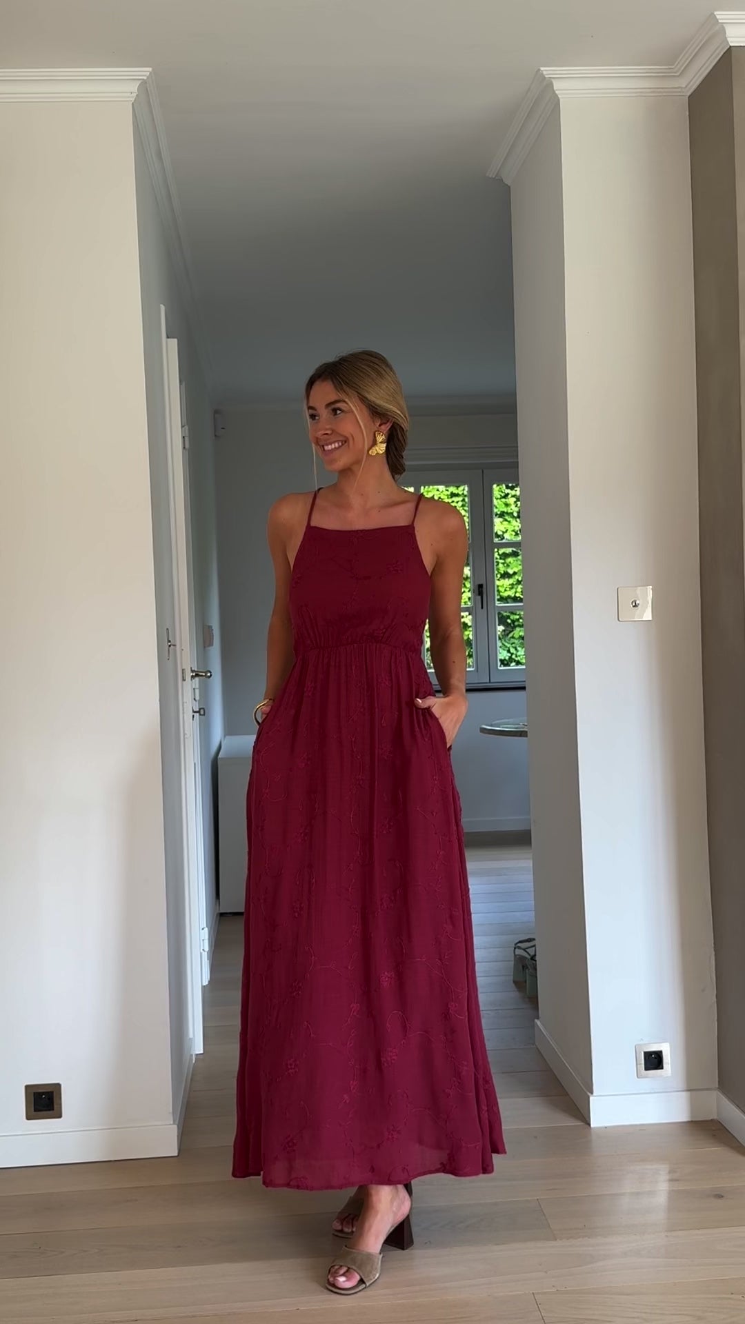 The Brick Noham Dress is perfect for sunny days when you want to feel light and effortlessly stylish. Intricate embroidery covers the dress, adding subtle texture and charm. Adjustable tie straps and a flattering square neckline let you customize your fit, while the open back keeps things fresh and breezy. With practical side pockets and a soft lining, this dress combines comfort with understated elegance.
