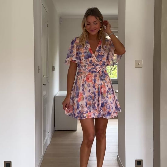 Light and charming, the Floral Ophelie Dress is your go-to for effortless style. This mini dress features a wrap front that flatters the figure, short sleeves for a breezy feel, and a fluid fit that moves beautifully with you. Fully lined for comfort, it’s a fresh pick for sunny days or casual evenings.